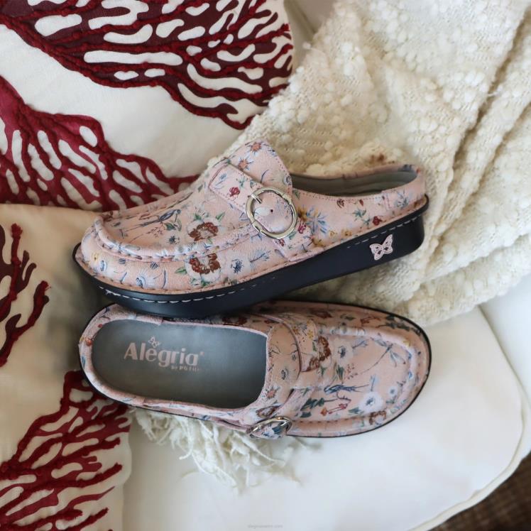Brigidissä on kukkainen simpukkaväri painettu mokkanahkapäällinen.