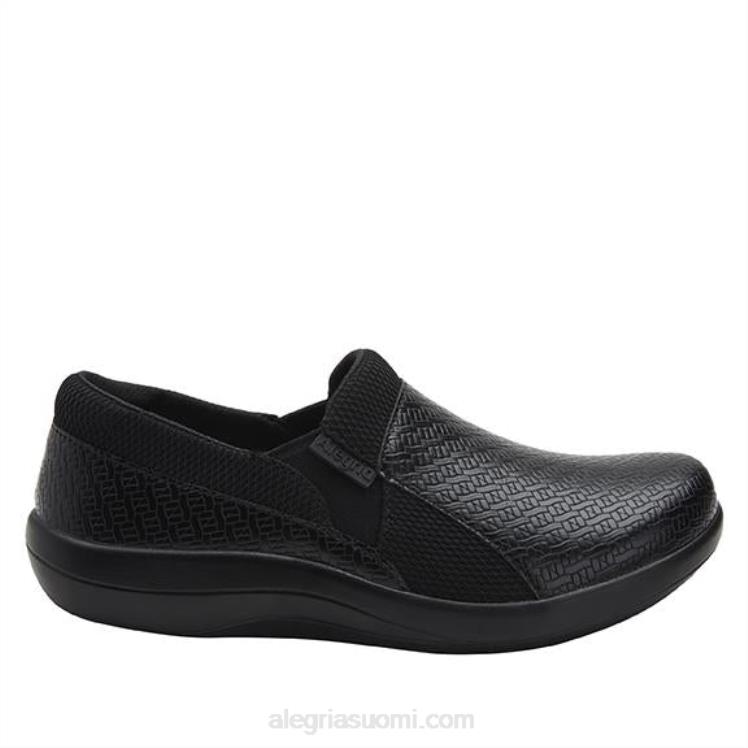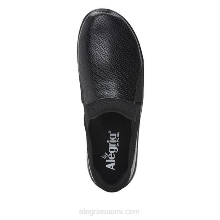 jossa on kohokuvioitu musta kudottu kuviointi vegaanisella nahalla koko päivän mukavuuden takaamiseksi.