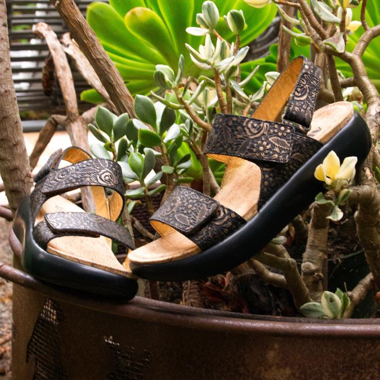 Tämän nahkasandaalin vampissa ja kantapäässä olevat kolminkertaiset koukku- ja silmukkahihnat tarjoavat äärimmäisen säädettävyyden ja turvallisuuden. mukavuuskokemus jatkuu pehmustettuun sisäpohjaan, välipohjaan ja liukastumista estävään tyylikkääseen keinuulkopohjaan rakennetulla kaarituella.