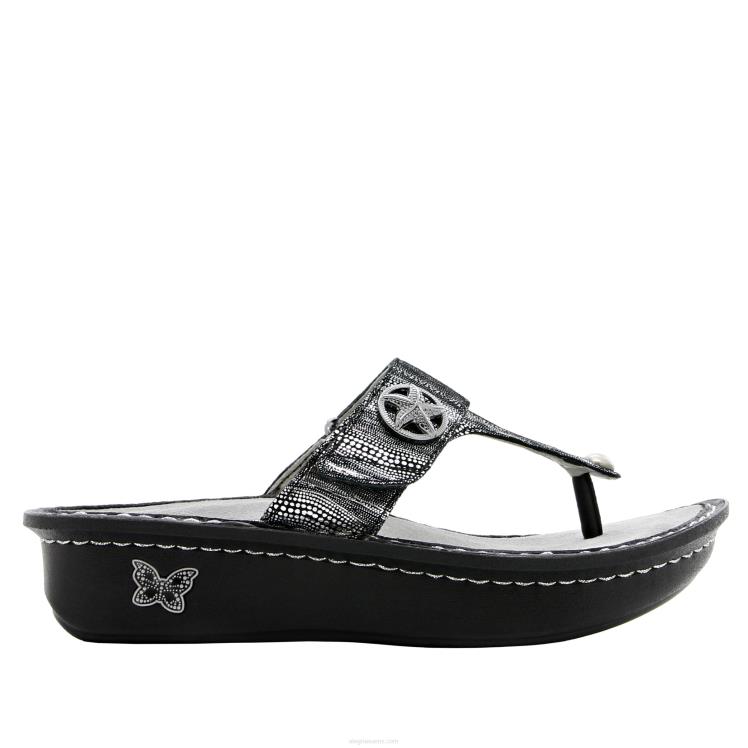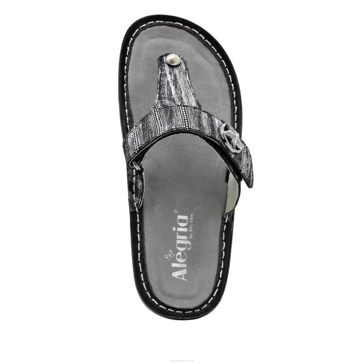 metallisen painettu mokkanahka, upea laitteisto on kirsikka tämän stringisandaalin päällä. .