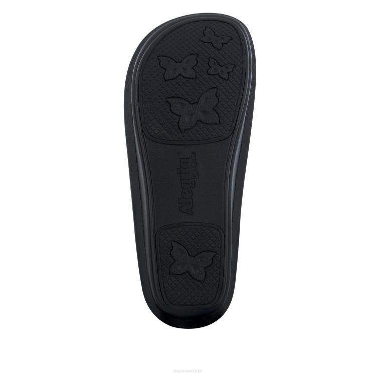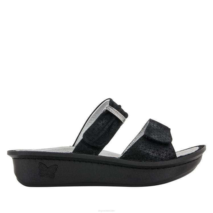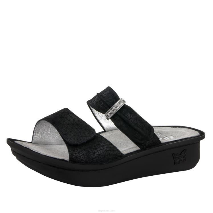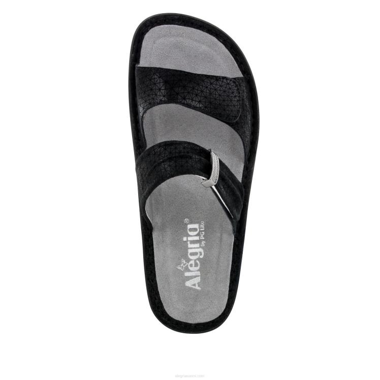 perinteinen liukuva sandaali, joka on suunniteltu kauniilla kuvioilla lämpimän sään käyttöön ja jossa on kimalteleva musta, aaltoileva nubukkikuvio.